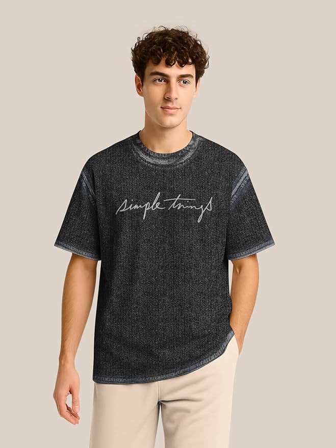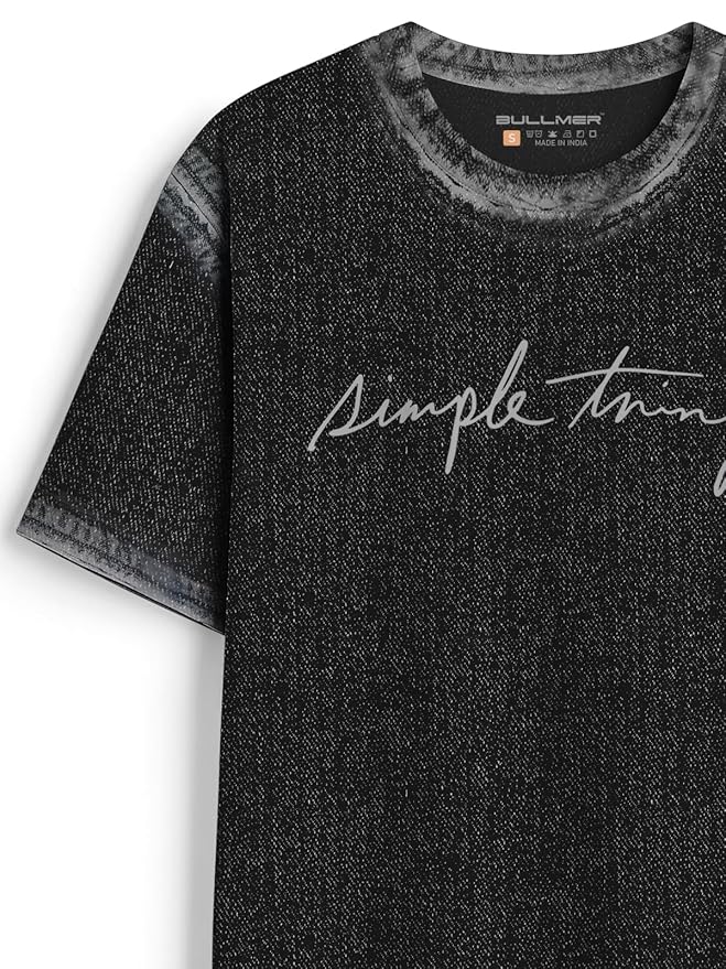 BULLMER ट्रेंडी हाफ स्लीव्ह ओव्हरसाईज कॉटन ब्लेंड क्रू नेक टी-शर्ट पुरुषांसाठी आराम