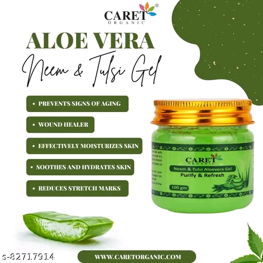 CARET ORGANIC Neem Wishlist Share Tulsi Aloe Vera Gel for Acne, Pimples & Glowing Skin Anti-Bacterial | Oil Control | Face & Body