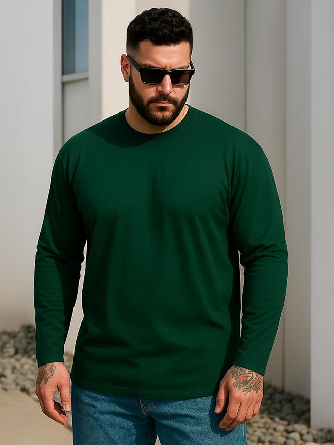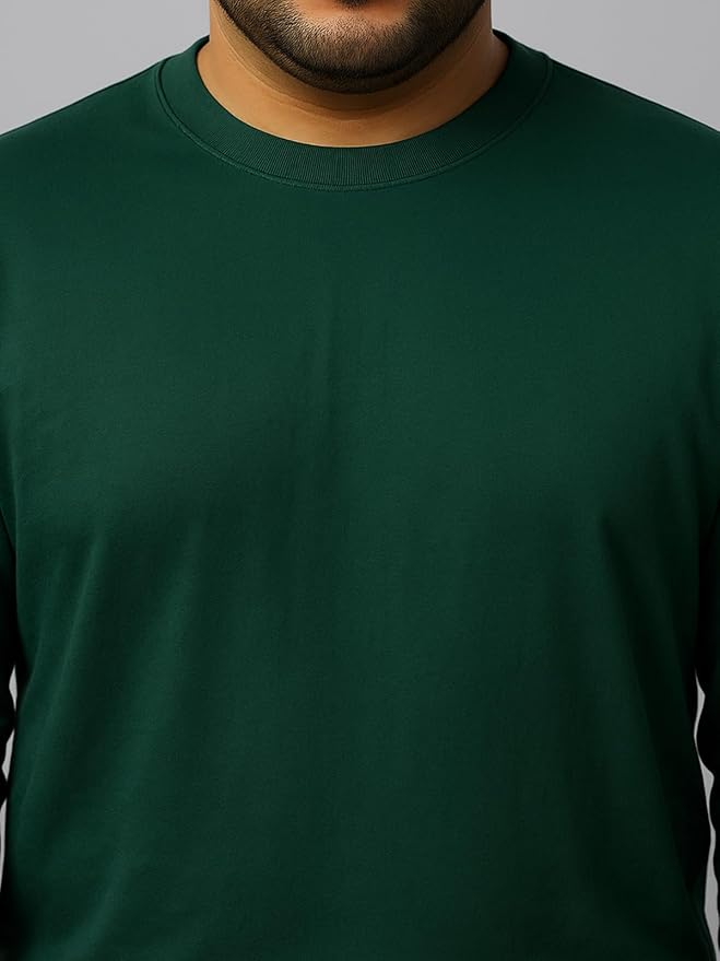 Veirdo शुद्ध सुती नियमित फिट सॉलिड कोअर प्लस साइज प्लस साइज फुल स्लीव्ह टी-शर्ट पुरुषांसाठी (आकार: 2XL ते 5XL)